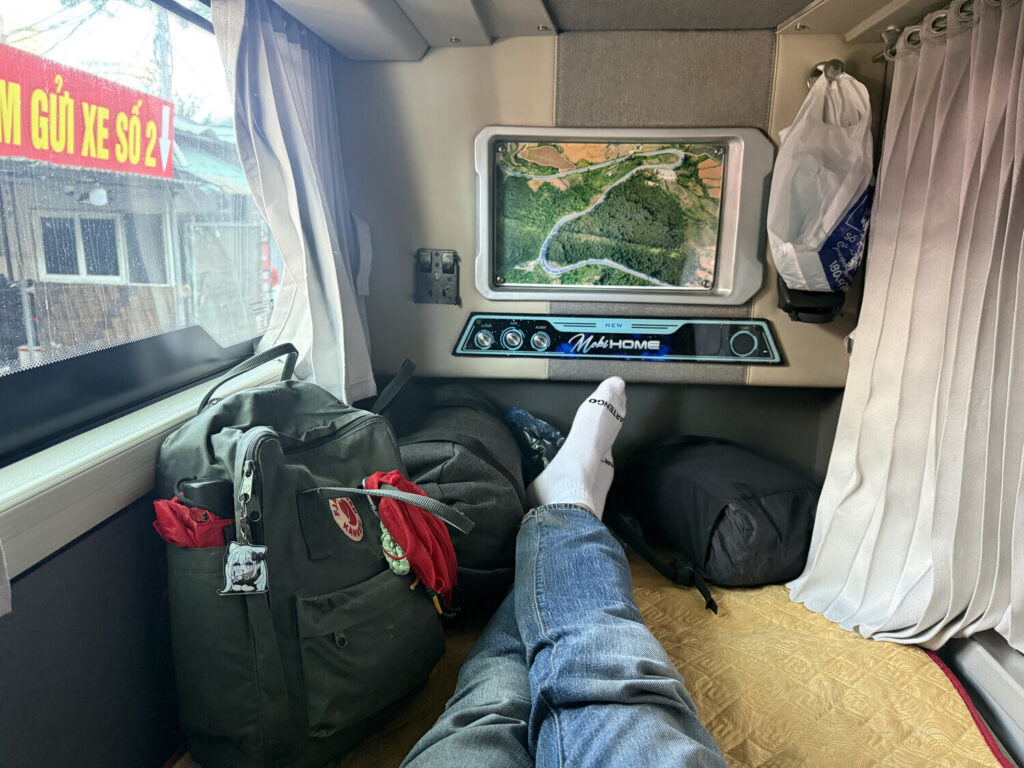 A las 11:30 me tomé el autobús número 34 para ir a la estación de autobuses de Mỹ Đình. Una hora más tarde salió mi autobús desde Mỹ Đình hacia Lai Châu. Tardaría ocho horas en llegar (380 km).