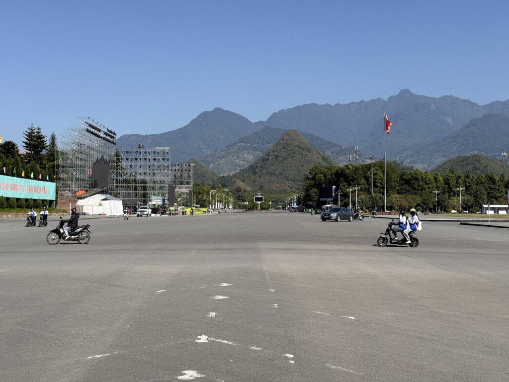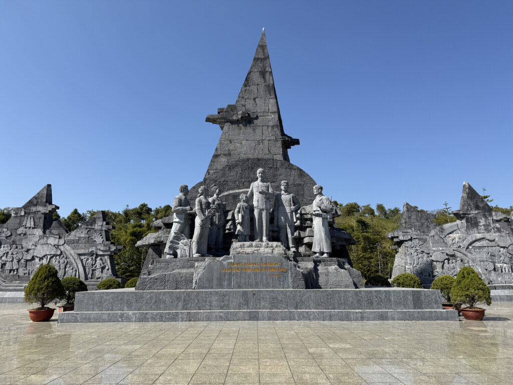Cada vez que veo monumentos como estos en Vietnam, me da algo de rabia. Este monumento ocupa mucho más espacio que el que ves en la foto, ya que también hay unas escaleras largas que conducen a él. En todo este espacio no hay nada: ni bancos para sentarse ni árboles para protegerse del sol ni cestos de basura, etc. El gobierno seguramente invirtió un buen dinero en construir este lugar en el centro de la ciudad, justo enfrente de la plaza central. ¿Todo para qué? Solo para poner un monumento al mayor «héroe» de la nación.