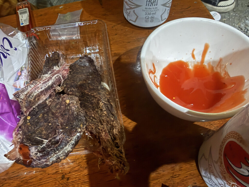 El padre me ofreció carne seca de búfalo y una lata de cerveza. Al rato también me ofreció fumar marihuana a través de uno de esos bongs o tubos de bambú. Consumir cannabis de esta forma pega mucho más fuerte que de la manera convencional.
