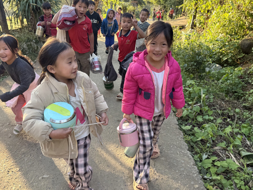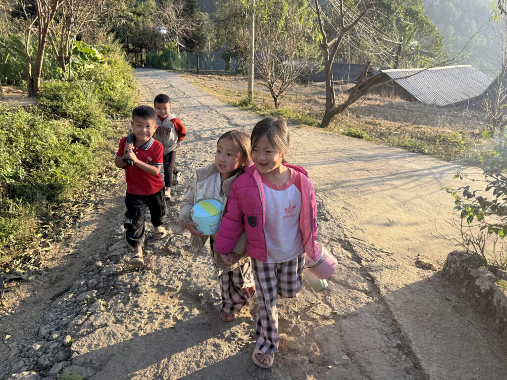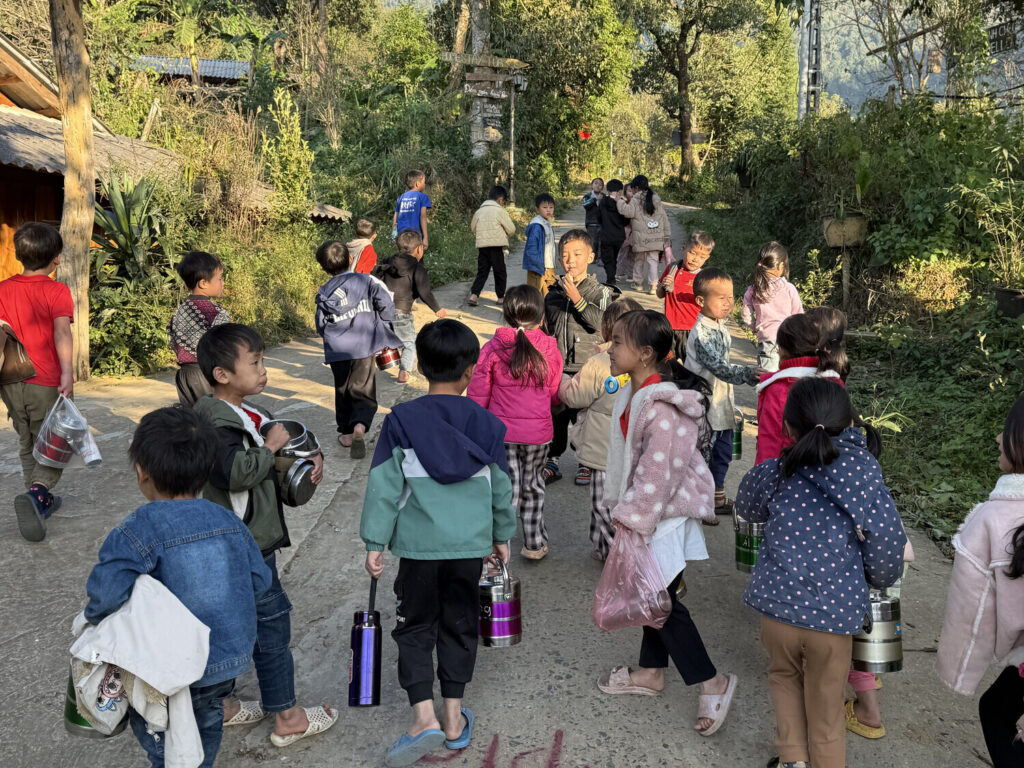 A las 16:20 —tan solo diez minutos después de que yo llegué a la escuela— a los niños los dejaron irse a sus casas. Vi como todos recogían una especie de termo grande que al principio pensaba que contenía agua, pero luego me di cuenta de que había arroz dentro: se trataba de la fiambrera donde los alumnos llevaban el almuerzo desde la casa.