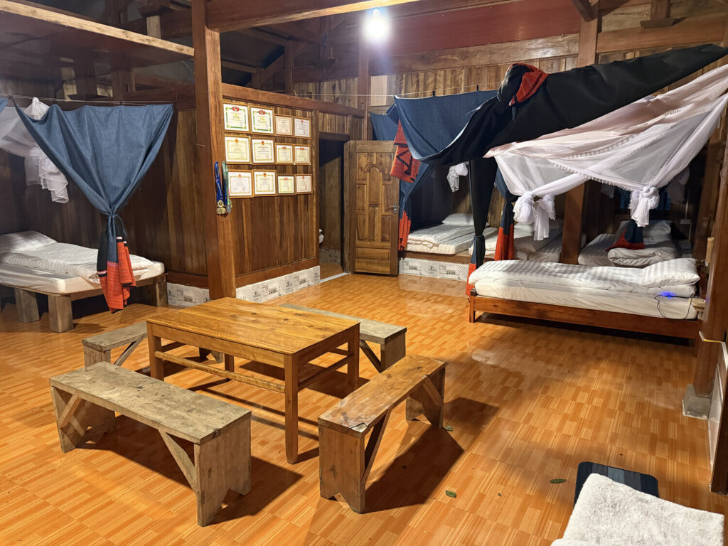 A las 17:00 fui a Homestay Chân Núi y hablé con el dueño para ver si me podía quedar a pasar la noche allí. Me dijo que una cama en el dormitorio grande costaba ₫100k (~3,3€) por la noche, así que acepté.