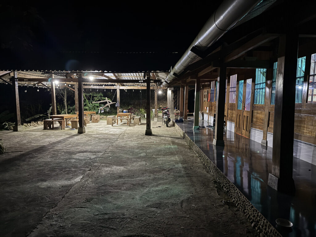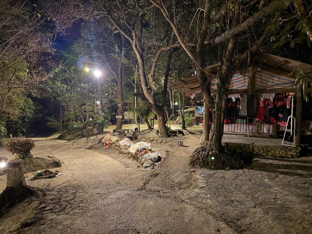 Mi caminata nocturna fue exactamente la misma que había hecho con los niños más temprano, solo que en sentido inverso: fui de vuelta hasta la escuela y luego volví al homestay.