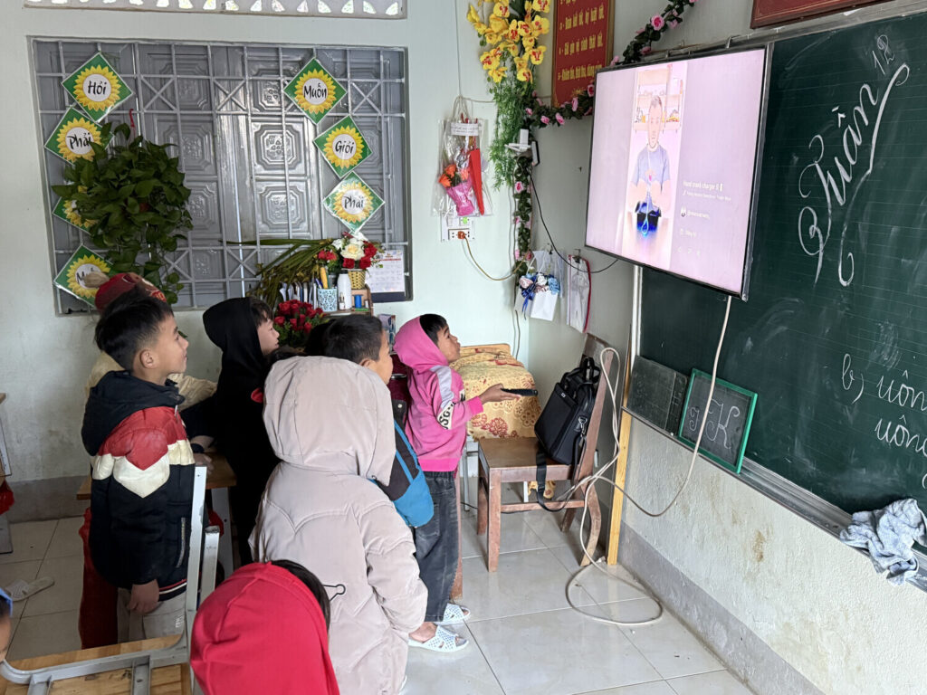 La maestra puso este video de YouTube, mostrando alumnos durante el recreo en una escuela pública vietnamita.