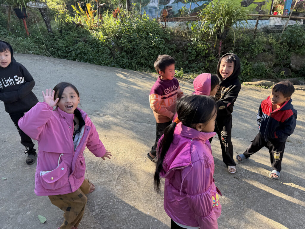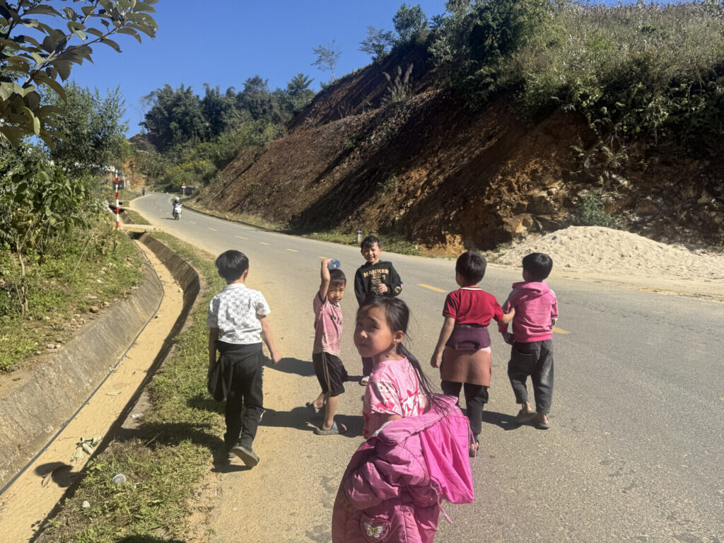 Lo que para un adulto es un mero paseo a pie por la aldea, para un niño es una aventura, una odisea, una misión de exploración llena de acción y diversión. Cuando le pregunté a los niños a dónde estábamos yendo, me respondieron «đi tham quan» (yendo a hacer turismo). ¿Qué mejor manera de conocer una aldea de la mano de un grupo de niños lugareños de 5-8 años? Me sentía enormemente afortunado de estar allí en aquel momento, compartiendo aquel hermoso día soleado con ellos en aquel hermoso lugar.