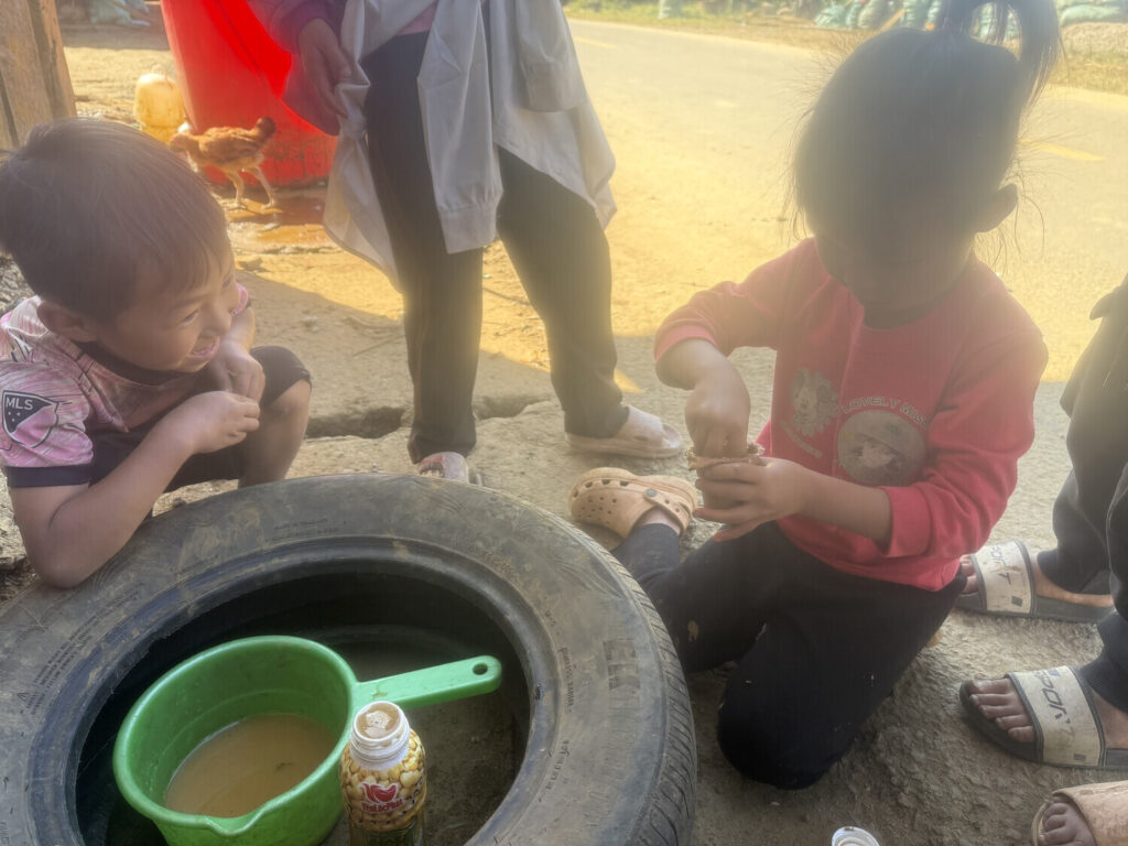 Les llevé a los niños unos panes que compré en el mercado, los comimos juntos y luego me despedí de ellos y volví al homestay.