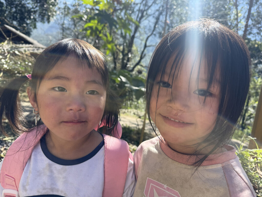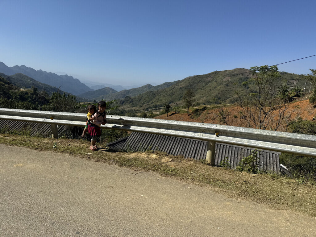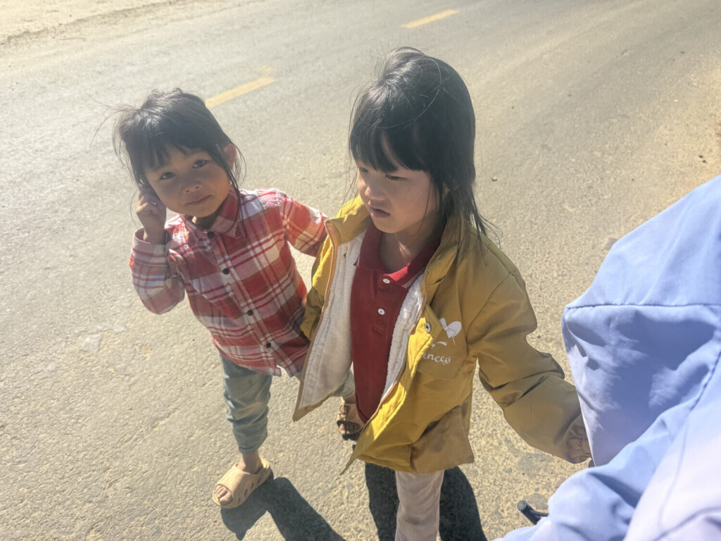 En un momento empezamos a caminar hacia la entrada de la aldea. Yo les pregunté si sus padres les dejaban salir completamente de la aldea e irse a la carretera y me respondieron que sí, lo cual me sorprendió ligeramente. Así que caminé con los niños un rato por el costado de la carretera.