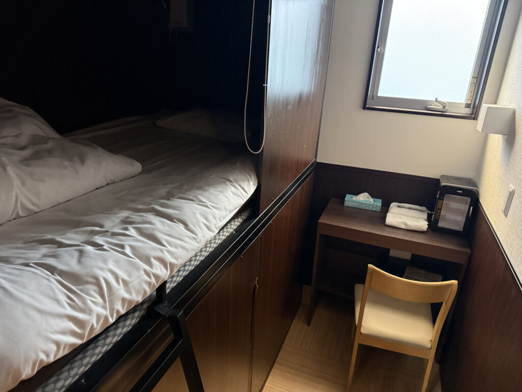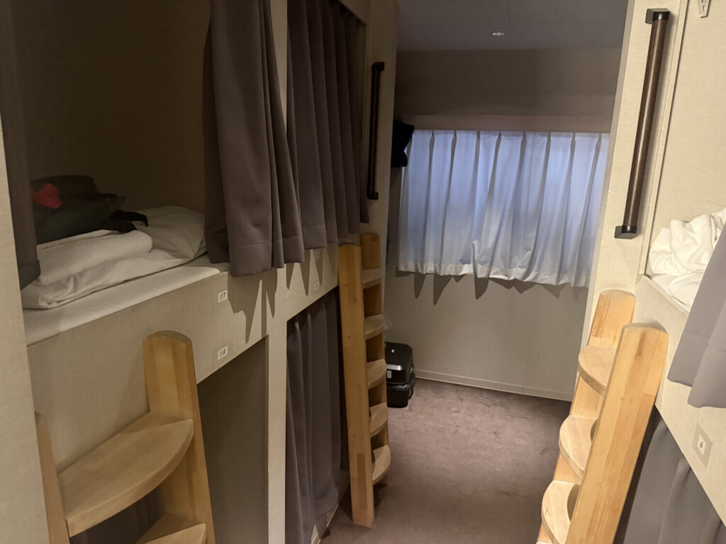 Lo que me resultó curioso de este hostal era que admitían tanto hombres como mujeres en la misma habitación, lo cual nunca antes había visto en Japón. Por lo general en los hoteles cápsula y hostales japoneses, hay una planta para uso exclusivo de hombres y otra para uso exclusivo de mujeres. Lo que sí: había dos baños, uno para mujeres y otro para hombres. Así que al menos eso sí estaba separado.