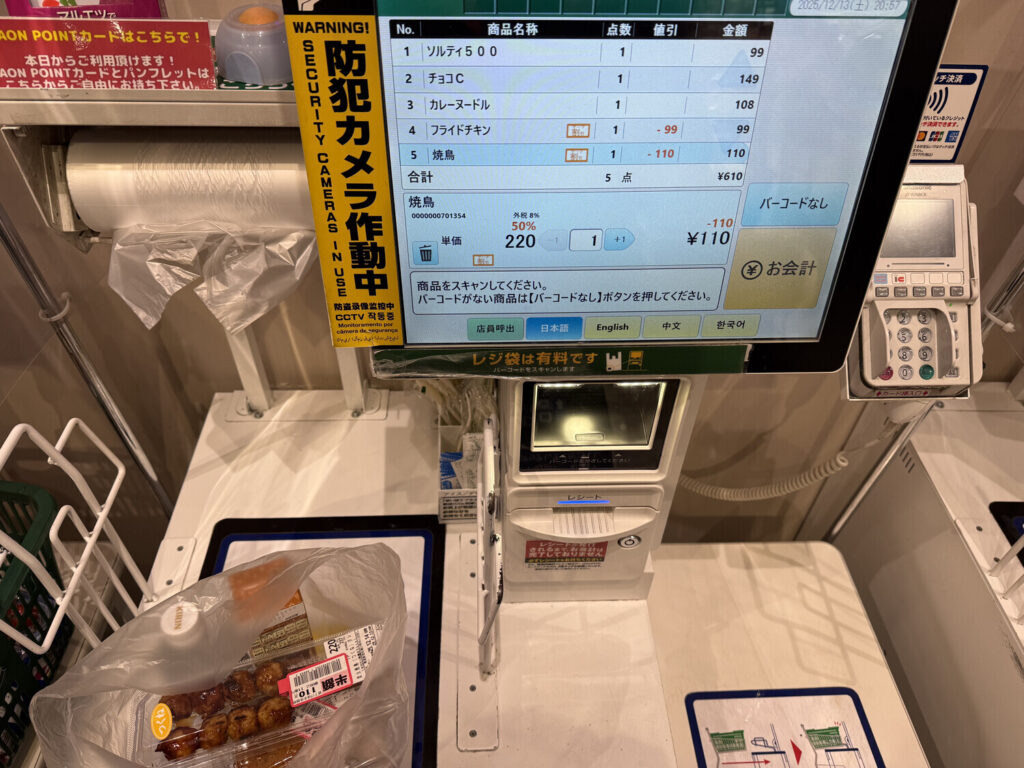 Gasté ¥610 (~3€) en provisiones, incluyendo mi cena.