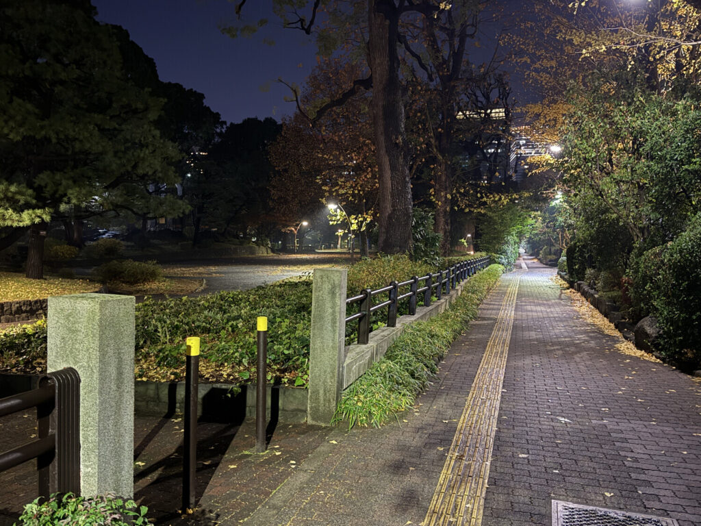 El sábado a las 12:00 salí del hotel y caminé un rato hasta llegar al barrio de 六本木 (Roppongi). Pasé por un parque llamado 檜町公園 (Hinokichō Kōen; parque Hinokichō).