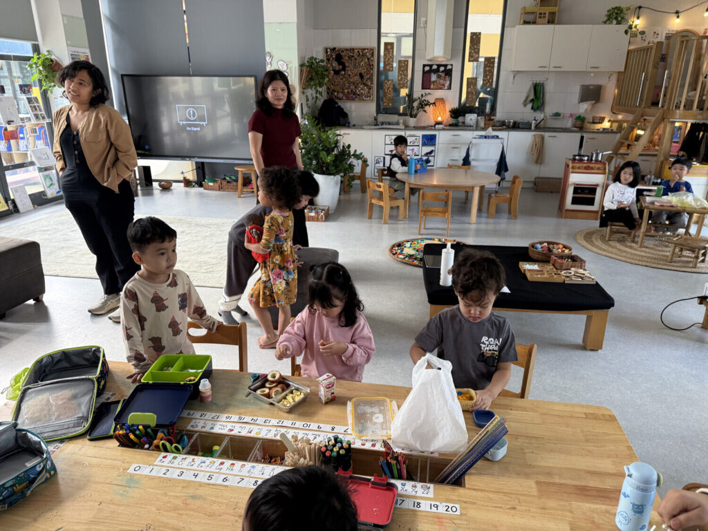 Estas charlas son gratuitas y abiertas a toda la comunidad, no solo a los padres de UNIS, por eso es que Linh suele participar. Además siempre hay una mesa con café, croissants, galletas y frutas.