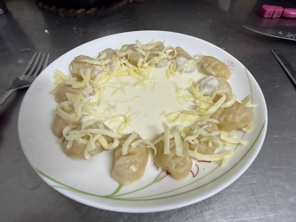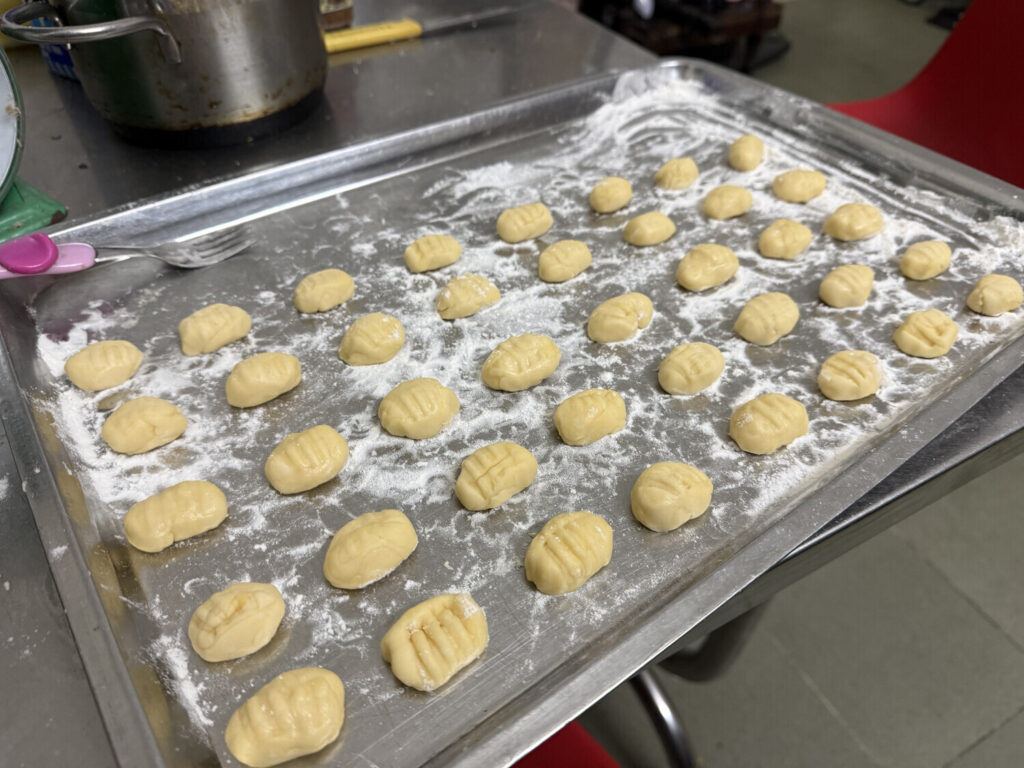 A las 13:00 llegamos a lo de Linh para almorzar. Hicimos ñoquis caseros con salsa blanca.