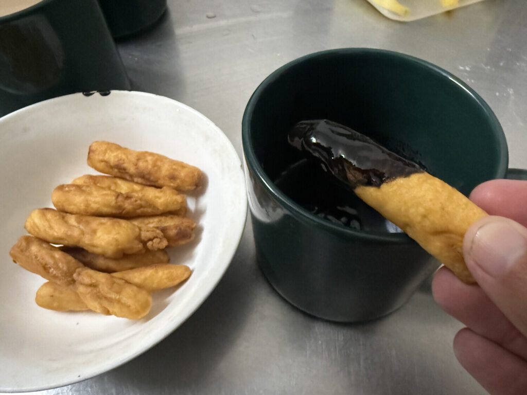 Más tarde también comimos unos churros con chocolate a la taza que había preparado Linh.