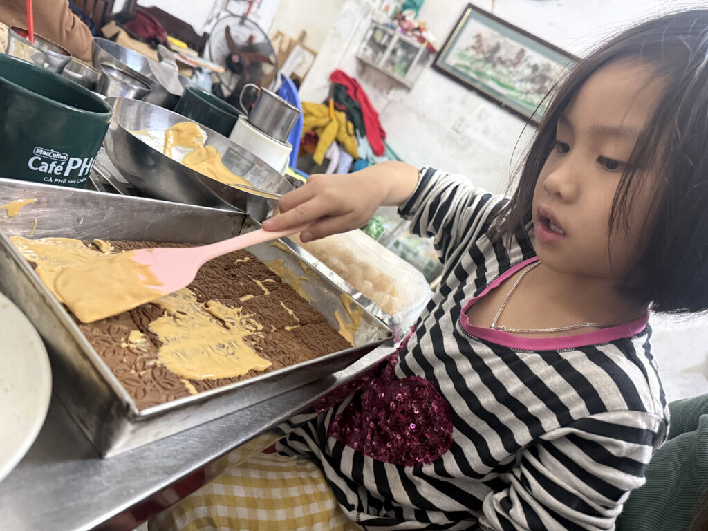 Compré un pote de dulce de leche repostero La Serenísima, tres paquetes de galletas de chocolate Chocolinas, seis paquetes de nougat Mantecol, una caja de conitos de dulce de leche cubiertos con chocolate Cachafaz, y una caja de tabletas de dulce de leche Vauquita. Incluyendo el costo de envío y las tasas de importación, todo me costó unos 90 dólares estadounidenses. Como lo retuvieron en la aduana vietnamita por varios días, en total tardó casi un mes en llegar.