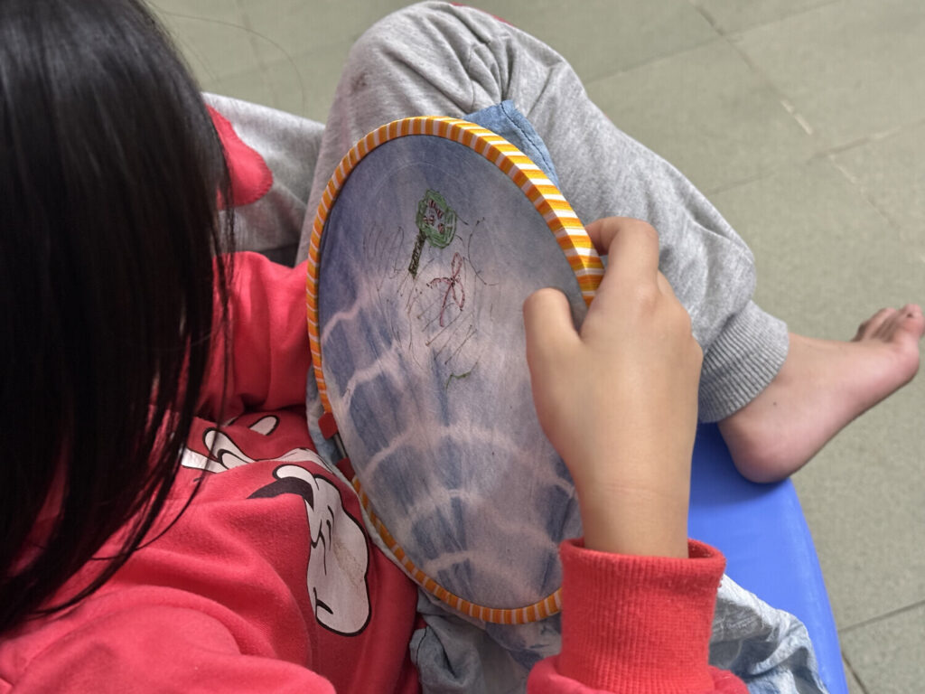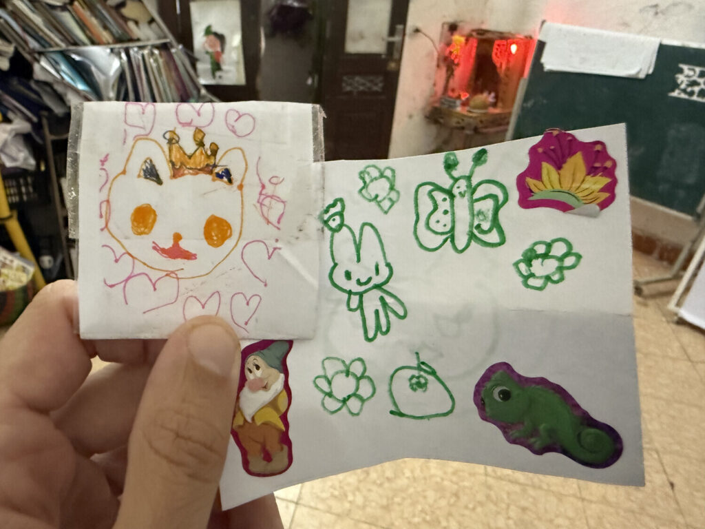 Suong me sorprendió este día, ya que de repente se me acercó y me dio un regalo: un dibujo que había hecho ella. Como sabes, los dibujos que me hacen los niños son muy preciosos para mí y los guardo siempre como si fuesen oro. Le agradecí y a cambio le obsequié un accesorio de Kuromi que había comprado en China para ella.