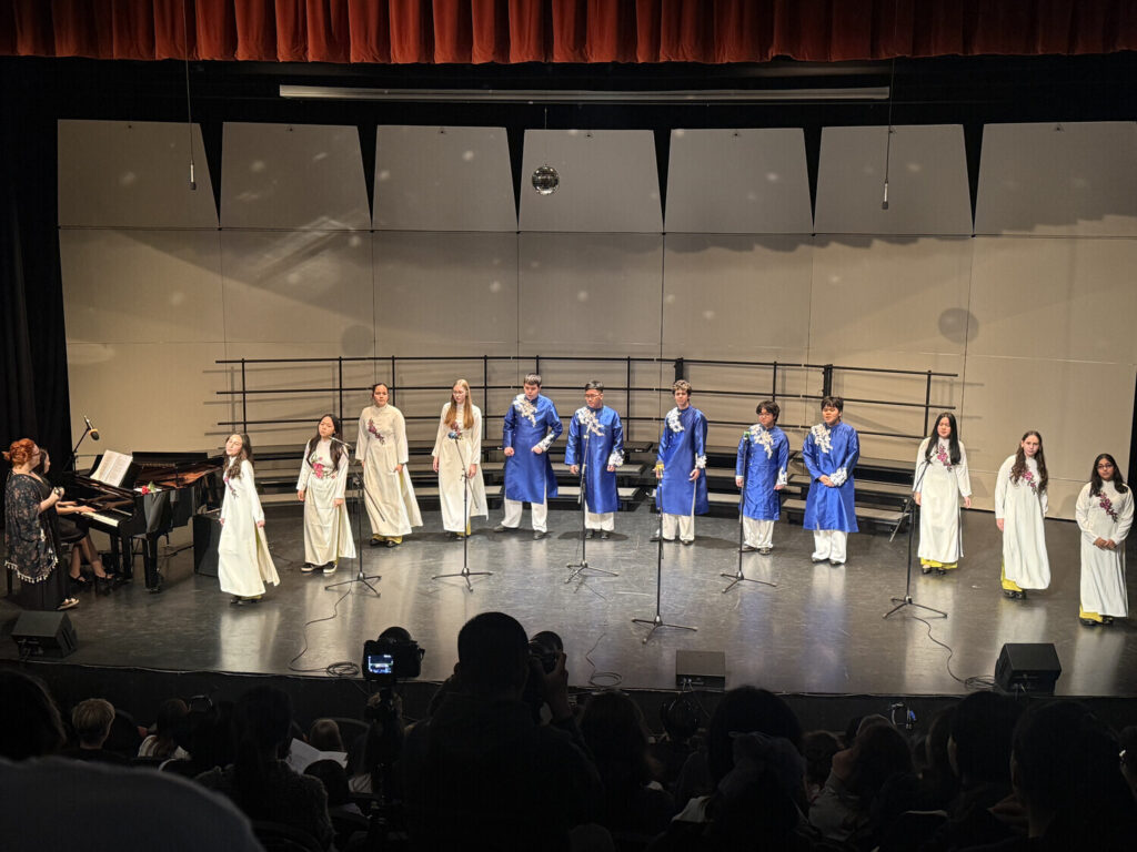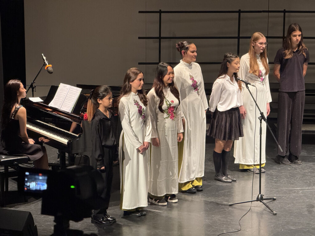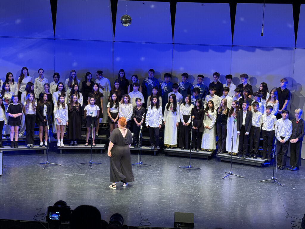 A las 16:00 nos fuimos, pasamos a buscar Diễm, la llevamos a su clase de música, y a las 18:00 llegamos a UNIS para ver otro Winter Concert más: un coro de estudiantes.