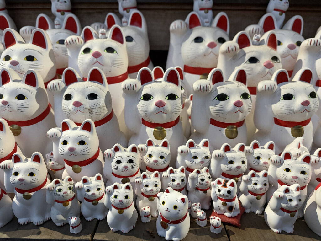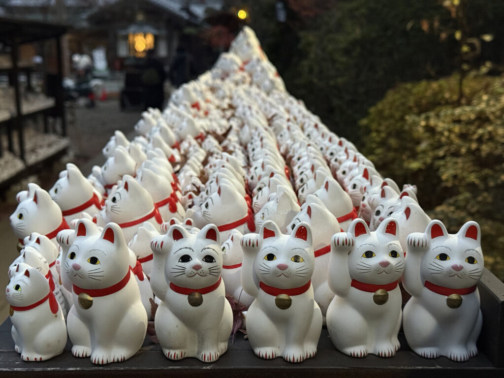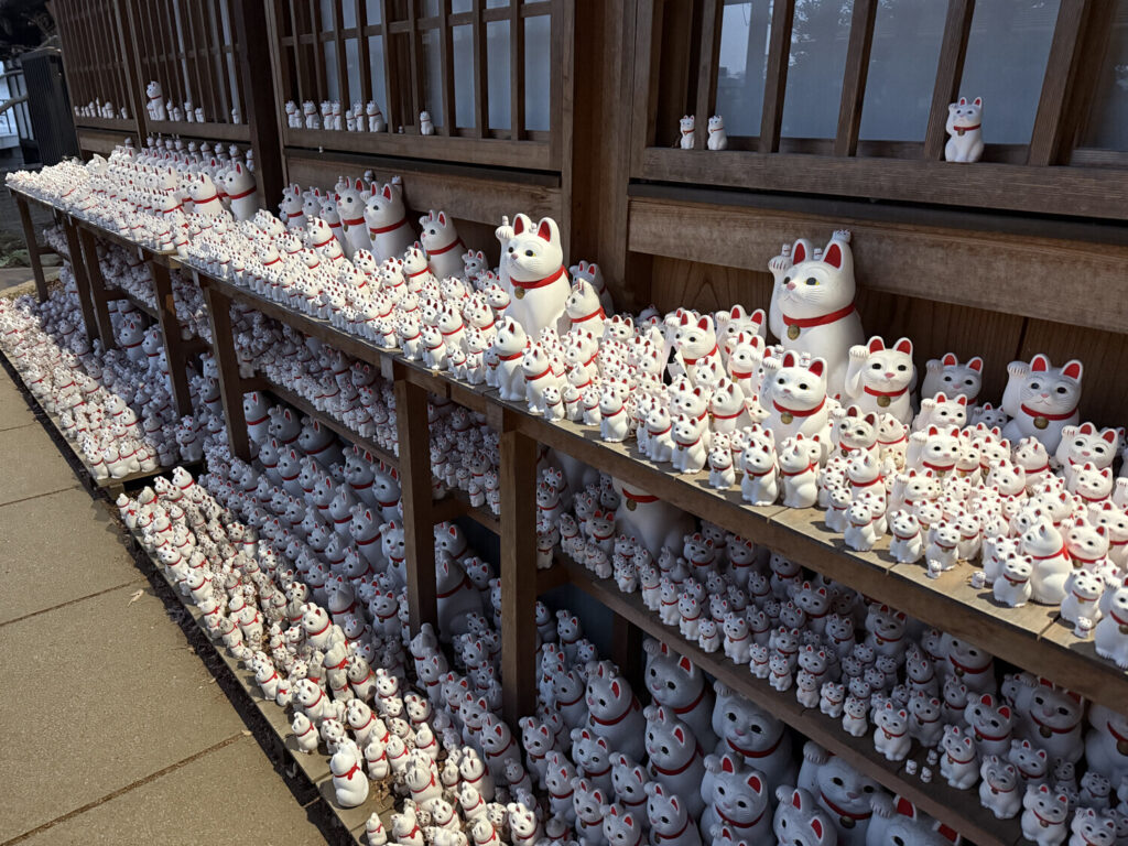Se le conoce como el «templo del gato» debido a las figuras de maneki-neko.