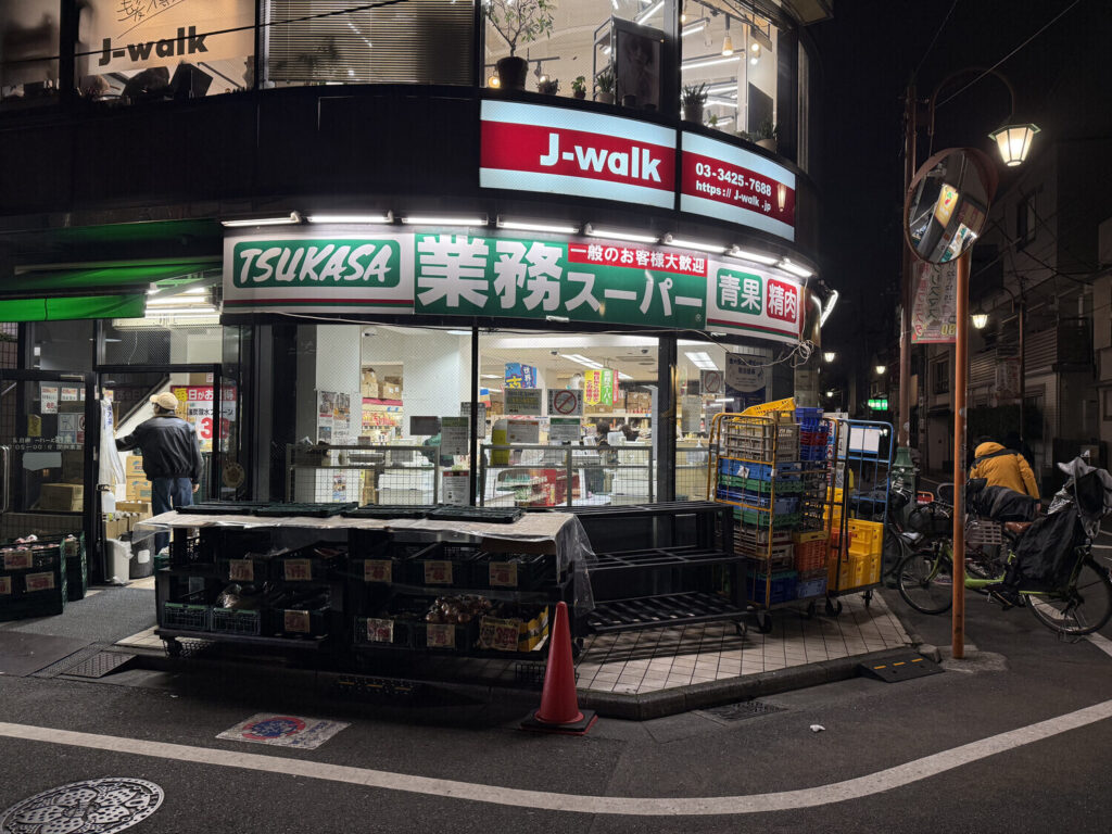 A las 17:30 pasé por 業務スーパー (Gyōmu Super), un supermercado que supuestamente es un poco más barato que los otros, aunque la verdad es que no me lo pareció demasiado. Además solo aceptaban efectivo y era algo pequeño, con pasillos muy estrechos. Igual me compré un par de cosas porque tenía hambre (no había comido en casi todo el día y acababa de caminar 10 kilómetros). Gasté ¥464 (2,5€).
