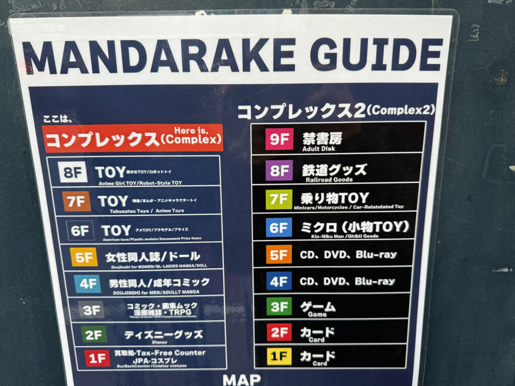 A las 15:30 visité los dos edificios de Mandarake, el original que ya conocía y el nuevo que al parecer abrió este año. El edificio original tenía ocho plantas y el nuevo nueve.