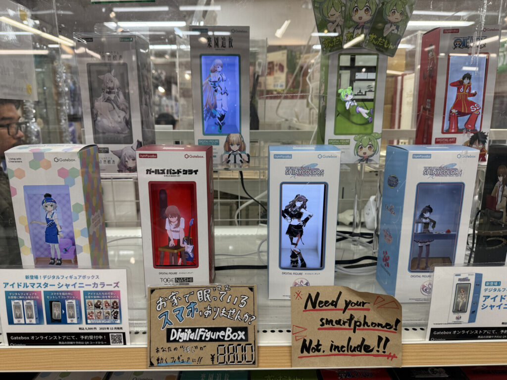 En este negocio vi un nuevo tipo de producto que no había visto nunca antes: una figura digital. Por lo que entendí, te vendían básicamente una caja y una aplicación que te tenías que descargar a un teléfono que no usaras, y luego poner ese teléfono en la caja para que quede permanentemente encendido y puedas ver a tu figura moviéndose allí. Probablemente también te dejaría interactuar con ella de distintas formas.