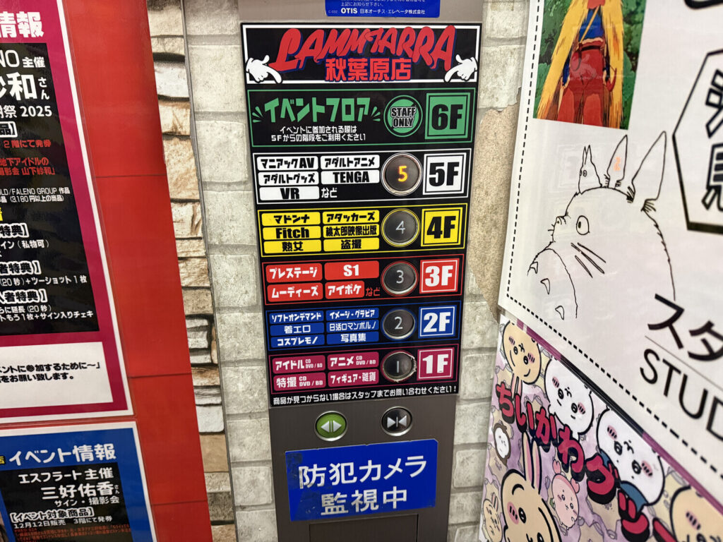 De ahí me fui a Lammtarra, una tienda nueva para mí, que no había visitado anteriormente. Tenía cinco plantas, de las cuales solo la primera —la que daba a la calle— tenía cosas aptas para todo público (peluches, figuras, accesorios para la mochila, etc.) mientras que las otras eran todas de DVDs XXX.