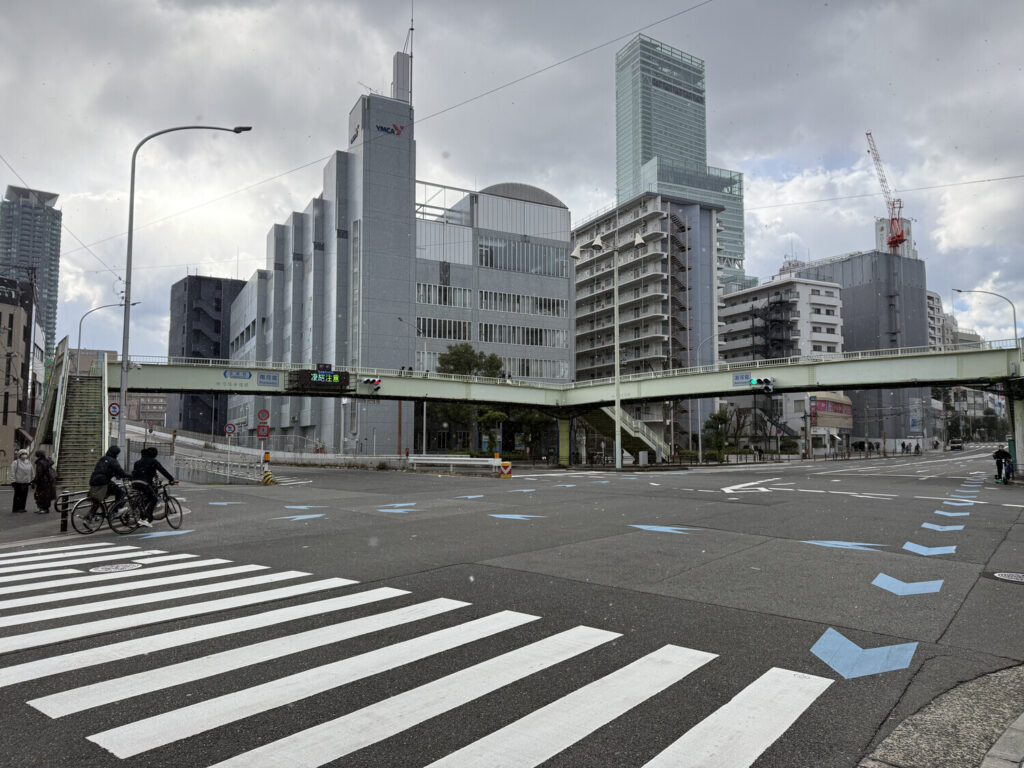 Durante mi trayecto de regreso al hotel la sensación térmica fue de -3 ºC, y en un momento empezó a nevar. Me dijeron que es muy raro que nieve en Ōsaka, así que tuve suerte.