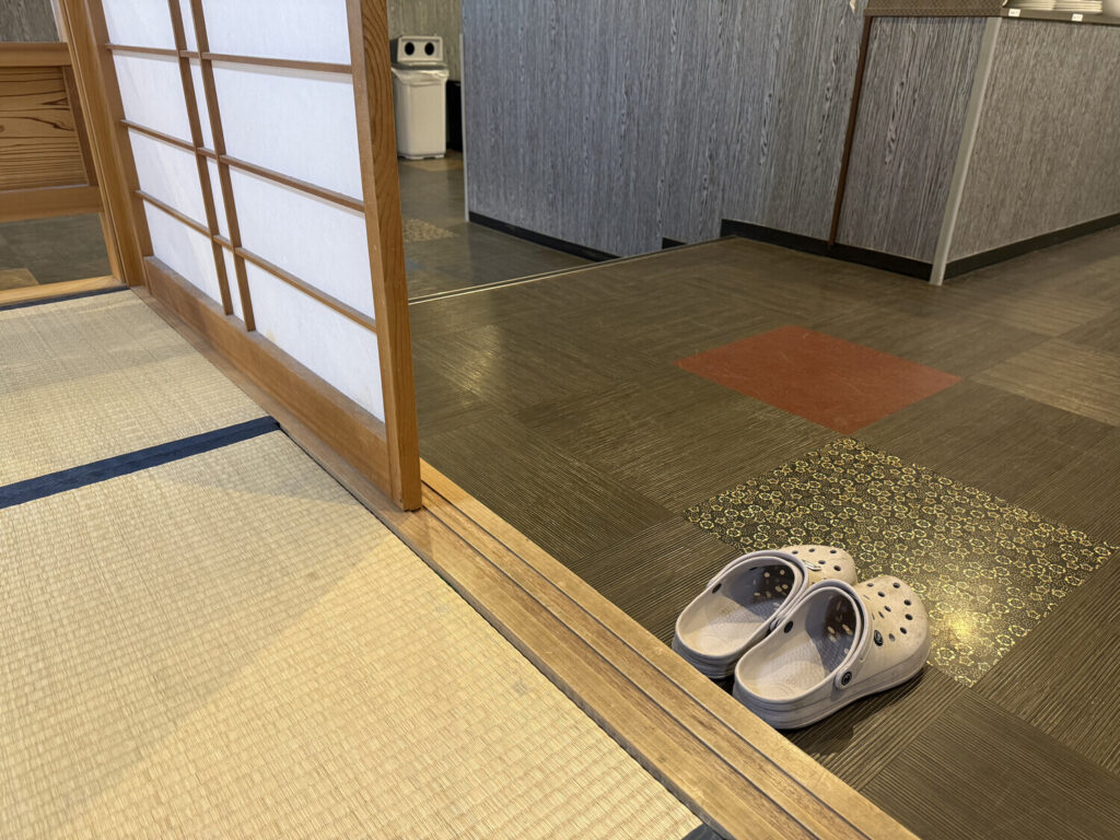 A esta zona no se puede ingresar con calzado, así que dejé el mío afuera. Cuando me dispuse a salir noté que alguien había girado mis sandalias cosa de que estuviesen apuntando hacia afuera y fuese más fácil ponérmelas. Este es un ejemplo del nivel de detalle y cuidado con el que los japoneses piensan y actúan todo el tiempo.