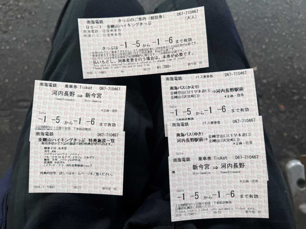 En Shin-Imamiya fui a la ventanilla de atención al cliente de Nankai Electric Railway y compré un pase con descuento para ir al monte Kongō, que era mi plan para esta jornada. Este pase me hacía ahorrar ~¥350. El mismo incluía billetes para el tren de ida, el autobús de ida, el autobús de vuelta y el tren de vuelta. En total el pase me costó ¥1780 (~10€).