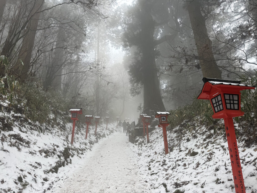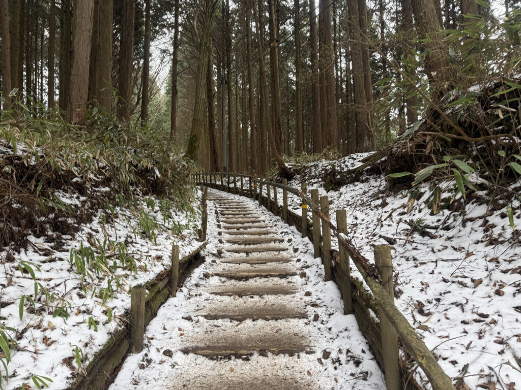 A eso de las 14:00 empezamos a bajar la montaña por un sendero distinto del que habíamos usado para subir. Por este sendero nos cruzamos con mucha menos gente que antes (que ya de por sí no era mucha). Cada vez que nos cruzábamos con alguien (prácticamente todos japoneses), nos saludábamos mutuamente con un konnichiwa.