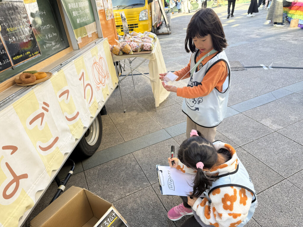 Más lolis trabajando. La niña con el marcador había escrito en la hoja «recomendación: donas», con lo cual entiendo que estaba entrevistando al hombre que vendía en la tienda.