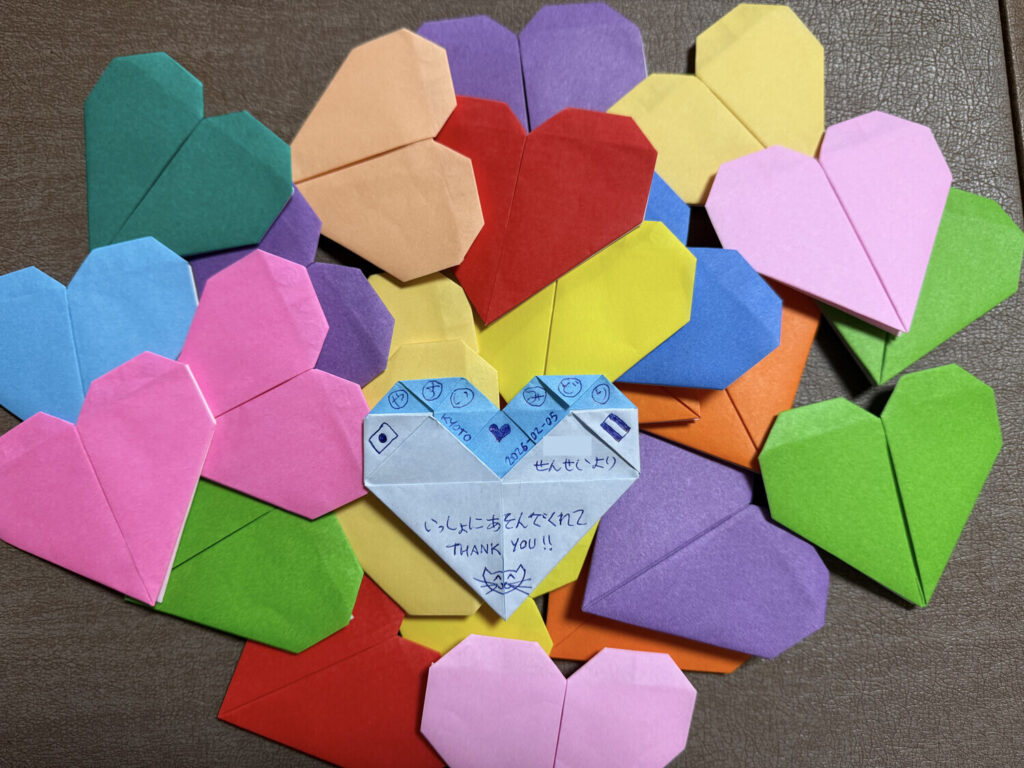 Al final la sensei me dio unos minutos para hablar con los niños y despedirme. También para darles el regalo que había estado preparando toda la semana: un origami de corazón.
