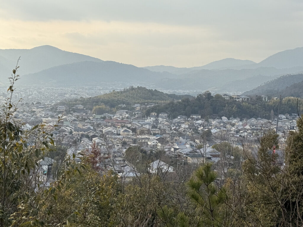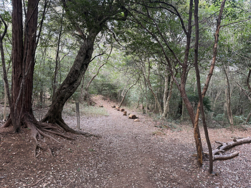 A las 15:00 salí de la casa y fui a un lugar (雙ヶ岡; Monte Narabigaoka) que quedaba a solo diez minutos a pie y era como un especie de minibosque en una minimontaña, con rutas de senderismo y miradores. Me encanta que haya cosas como esta en plena ciudad en Japón. Si estuviese en Buenos Aires y me diesen ganas de ir a hacer senderismo por un bosque me tendría que ir fuera de la ciudad, quién sabe exactamente a dónde…