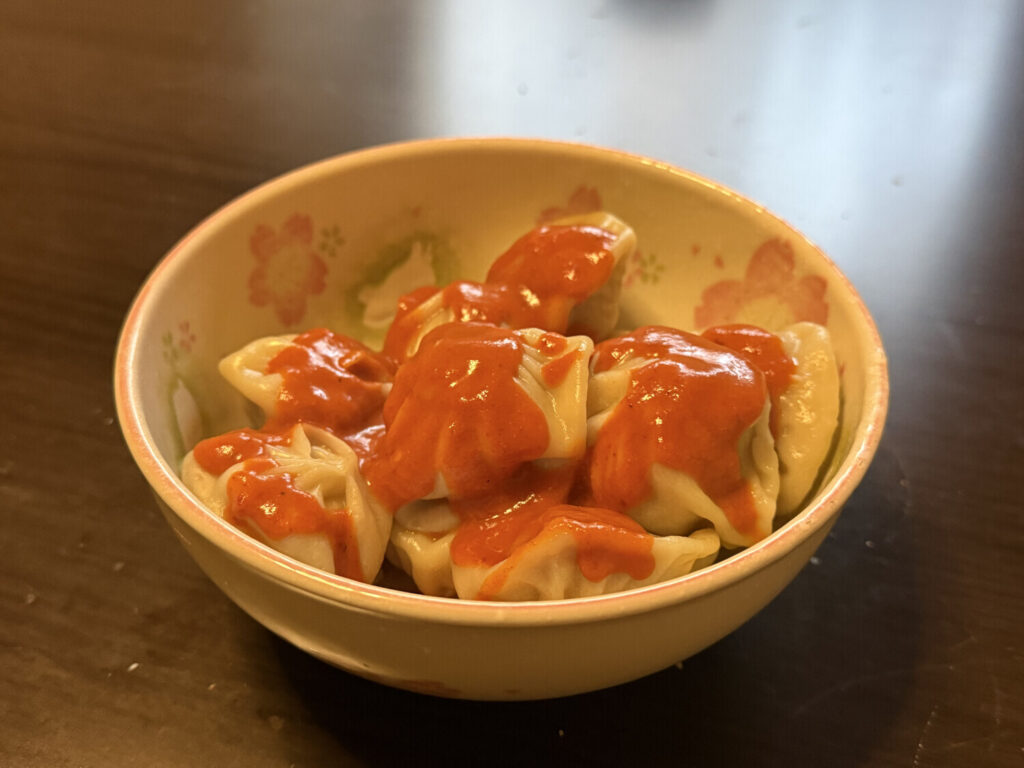 A las 11:20 volví a casa y me calenté los momos que había comprado en un restorán nepalí (¥450; ~2,4€ un plato de diez unidades).