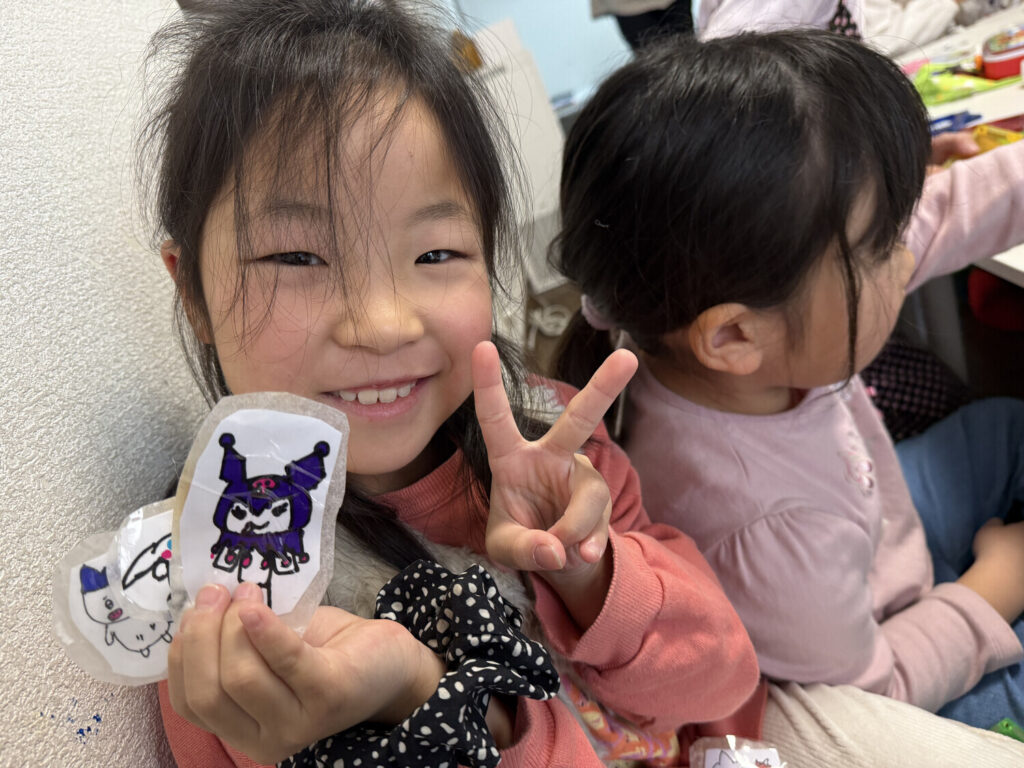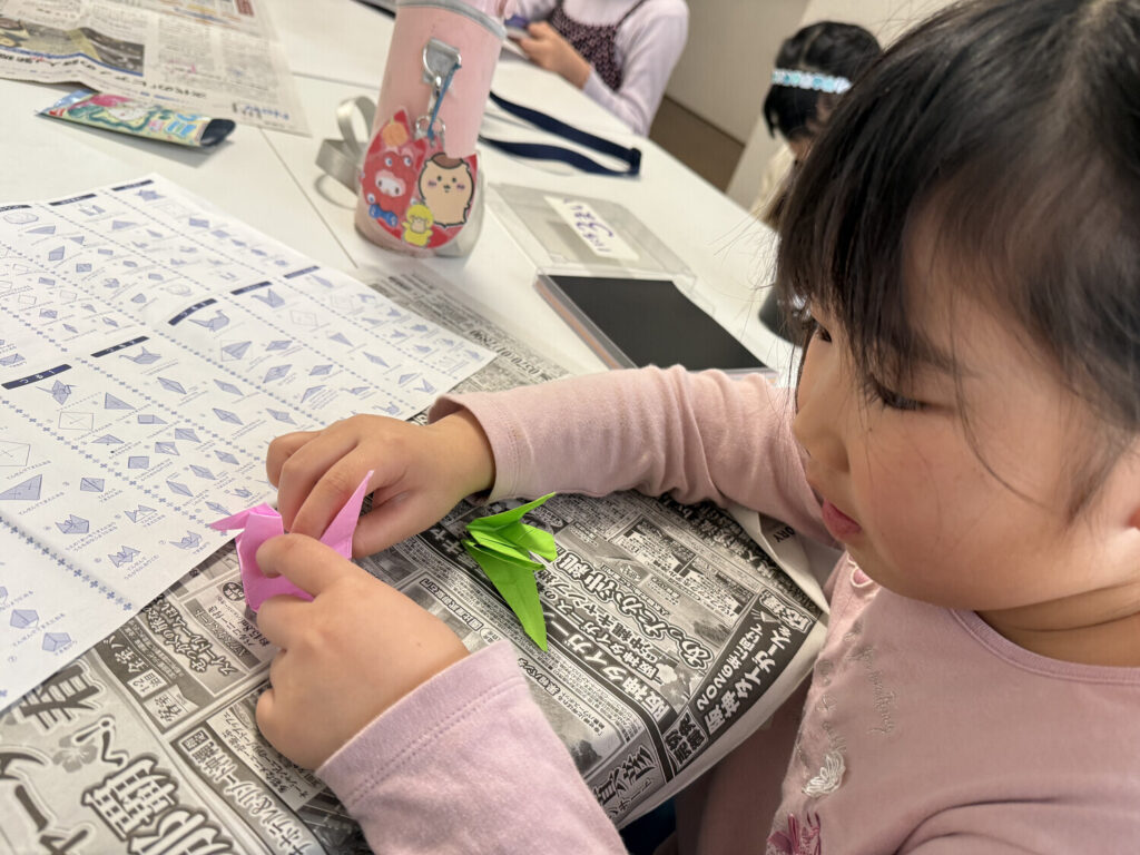 Así que me volví con las niñas que estaban dibujando / haciendo stickers. También jugué con una a hacer origami.