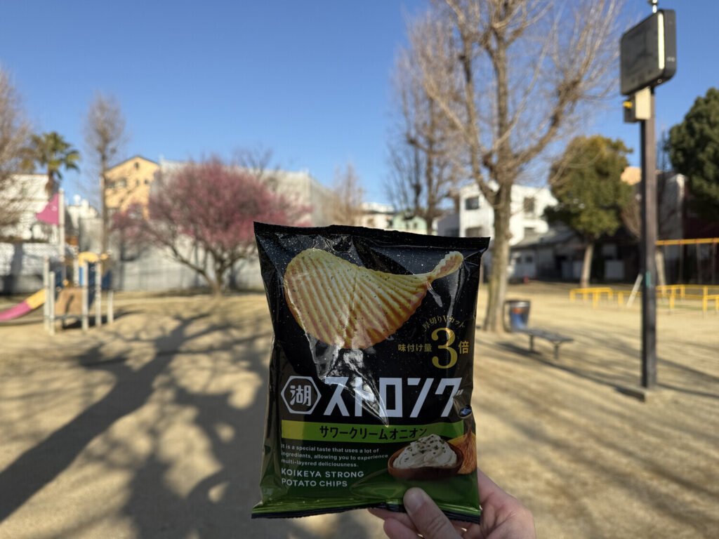 Me sorprendió que no hubiese ningún niño en este parque. A esta hora uno esperaría que ya estuviesen fuera de la escuela y jugando en los parques, sobre todo considerando que estaba soleado. Sí había un par de adultos mayores, incluyendo uno que se puso a columpiarse en los columpios. Me gusta ver cuando los adultos usan los columpios (u otras cosas normalmente consideradas para niños)—siento que en Japón sucede más seguido que en otros países. Recuerdo cuando un guardia de seguridad me regañó por querer usar los columpios en un parque en Vietnam.