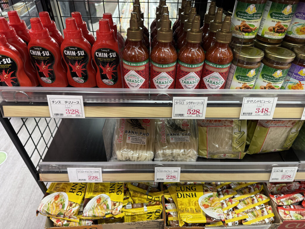 Me gusta descubrir nuevas cadenas de supermercados en Japón y explorar lo que tienen. Por ejemplo en esta me encontré con una sección de snacks importados y una donde tenían varias cosas de Vietnam y Tailandia.