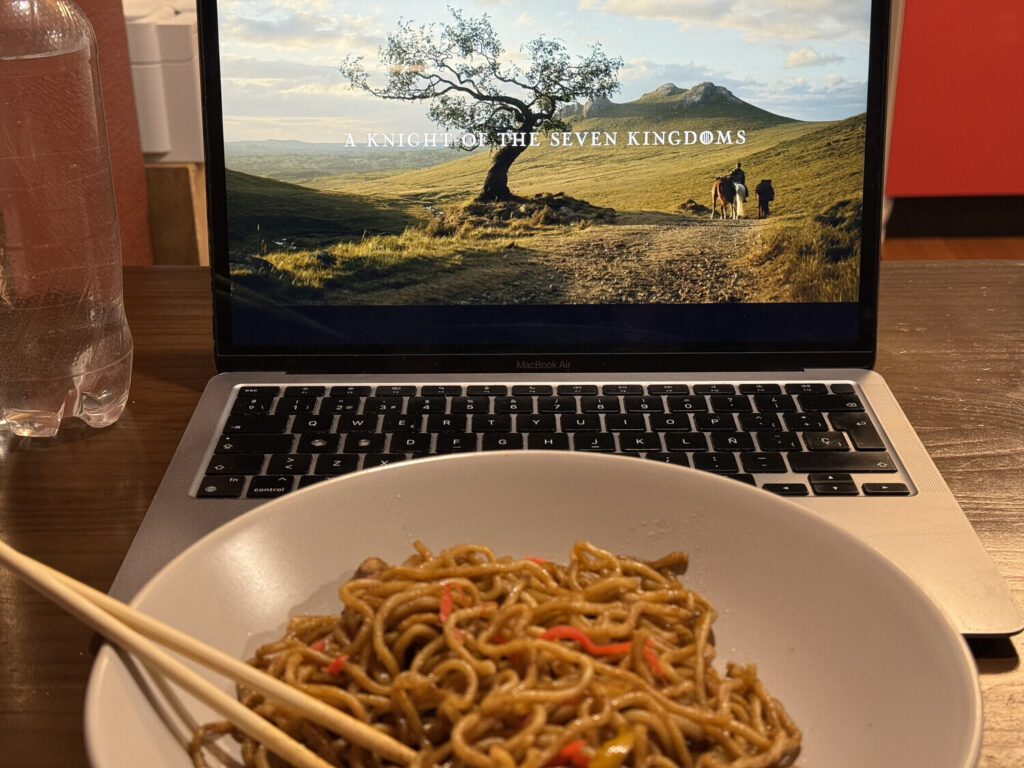 A las 21:00 pasadas llegué al hotel y me puse a cenar el yakisoba que me había comprado mientras veía el primer episodio de A Knight of the Seven Kingdoms (El caballero de los Siete Reinos), la nueva serie de HBO, derivada de Game of Thrones.
