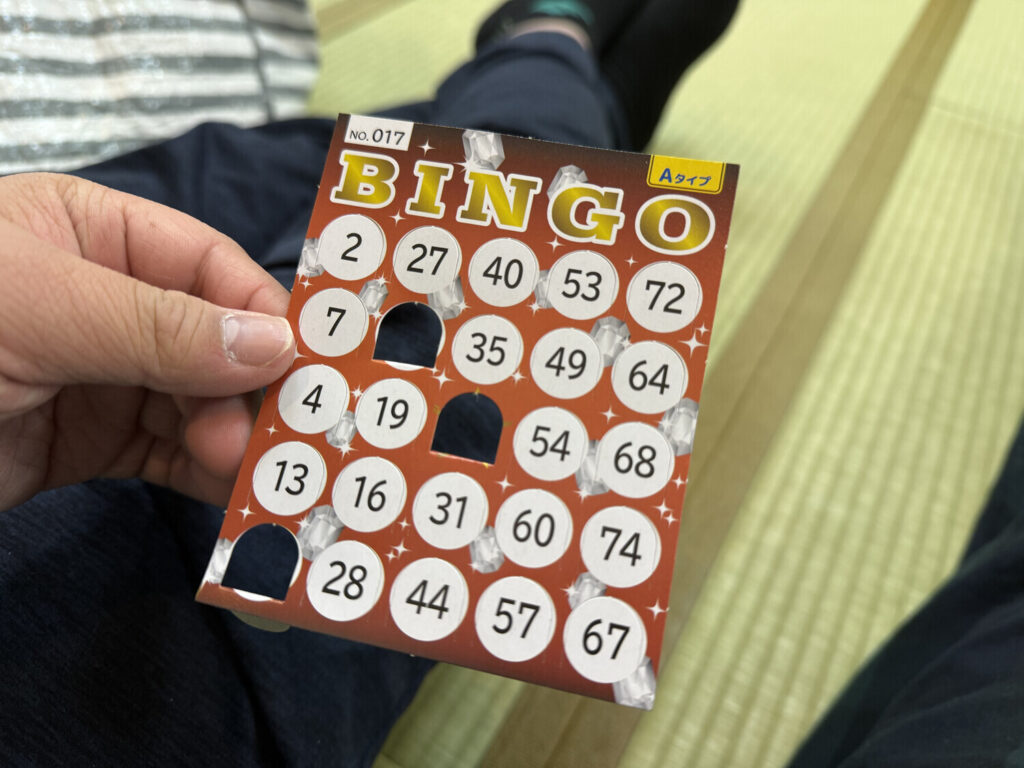 A las 19:30 arrancó el torneo de bingo en la sala de estar. Cada participante recibió un cartón de bingo; los líderes los ayudamos a ver cuándo hacían bingo. La directora cantó números hasta que todos hubiesen llegado a hacer bingo. A medida que llegaban al bingo, pasaban al frente para elegir un regalo/premio de la mesa (cosas de poco valor como juguetes/dulces).