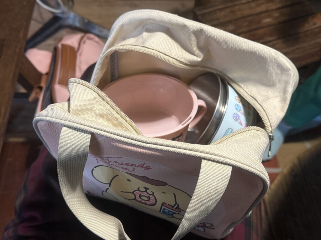 Además de su mochila hiperpesada, tenía que cargar con dos cosas más: una lonchera y una bolsa con las cosas de inglés.