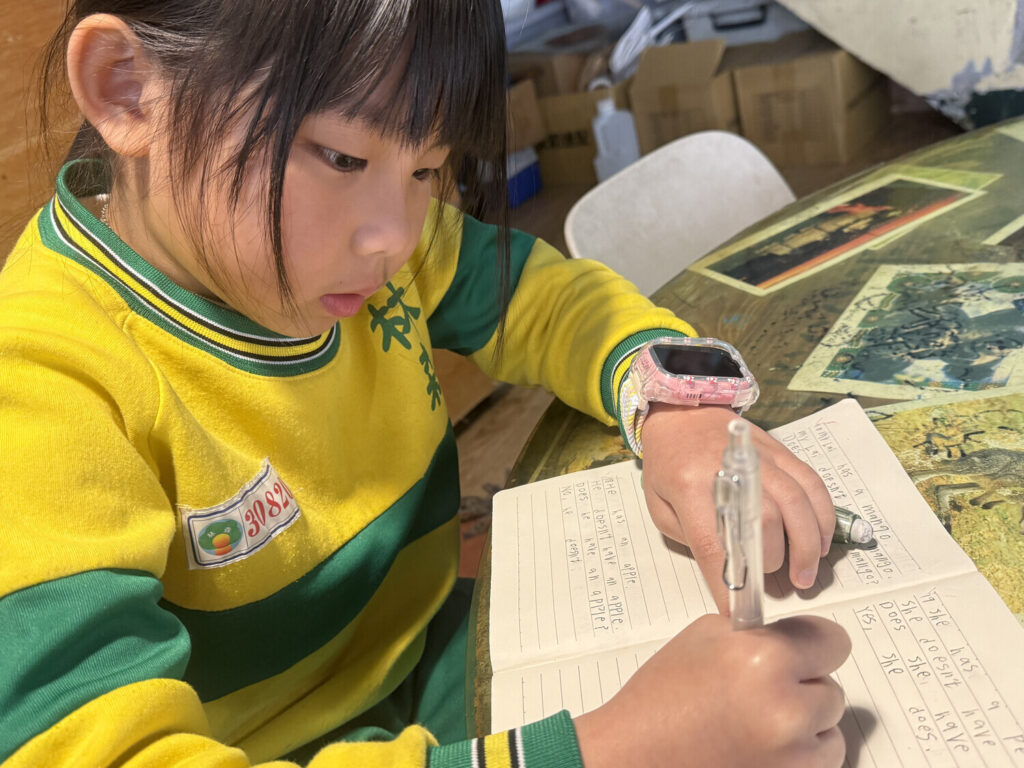 - Xinyu, la única asalariada. Se encarga de limpiar, preparar el snack de media tarde, ayudar a los niños con la tarea o a entender mejor cosas que les cuestan, ya sea en chino o en inglés.