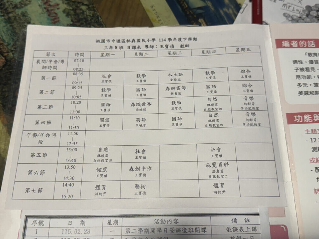 | 08:35–09:15 | Sociedad | Matemáticas | Hokkien (idioma local) | Matemáticas | Actividades integradas |