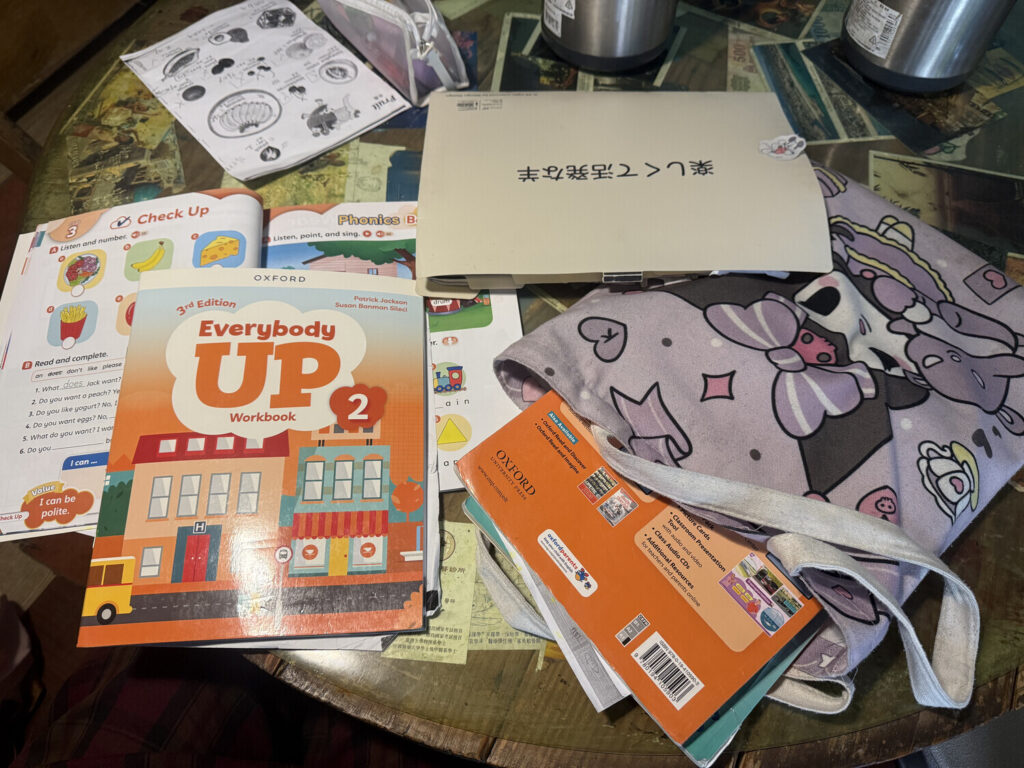 Mientras ella hacía la tarea, yo me puse a revisarle la mochila. Obviamente le pedí permiso primero. Me daba curiosidad ver todo lo que llevaba dentro. Tenía una decena de libros, tres cuadernos de comunicaciones (no me preguntes por qué), y un par de cuadernos más para escribir.