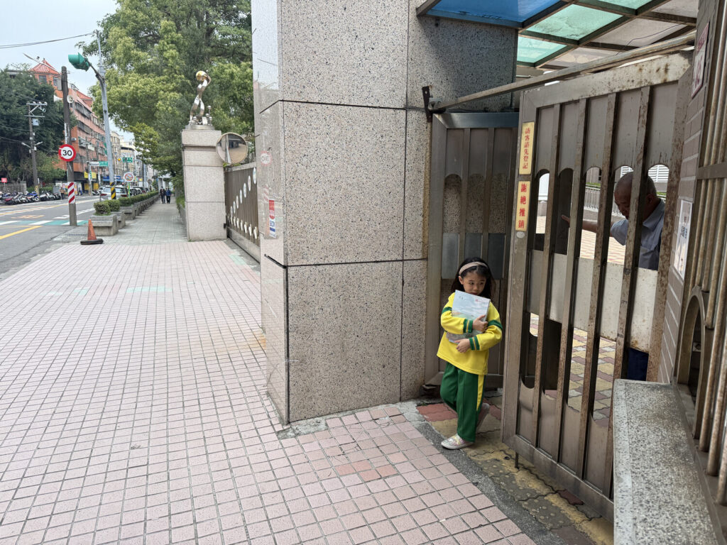 En un momento una de las niñas —llamada Qíēn— me pidió que la acompañara a la escuela porque tenía que ir a buscar la tarea que se había olvidado de traer. Era solo media cuadra el tramo que separaba el centro de la escuela, pero como te conté los niños taiwaneses en general no tienen permitido cruzar la calle solos. Así que fui con ella hasta la puerta de su colegio y la esperé allí a que saliera.