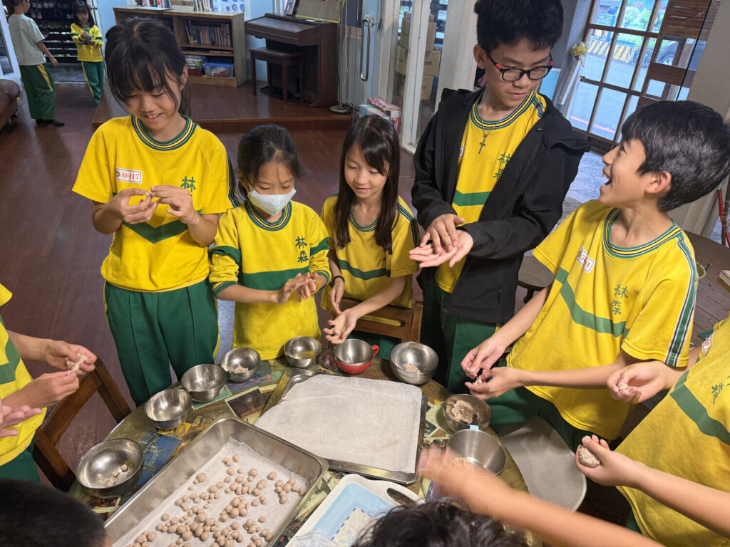 Los más grandes (grados 4-6) haciendo los bolitas para el snack