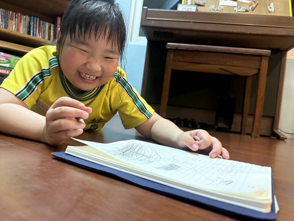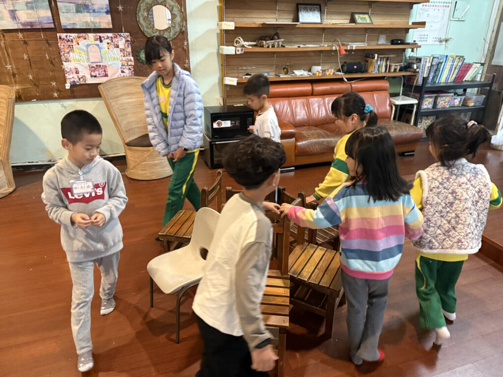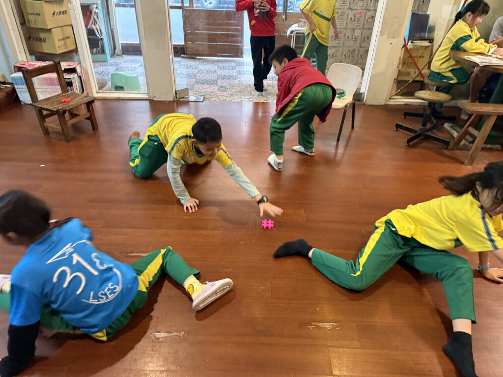 Como el día afuera estaba lluvioso, hoy no salimos a correr. En su lugar, a las 14:00 los niños jugaron al juego de las sillas. Yo gestionaba el juego —poniendo y parando la música— en el salón mientras Xinyu estaba arriba en el aula con otros niños.