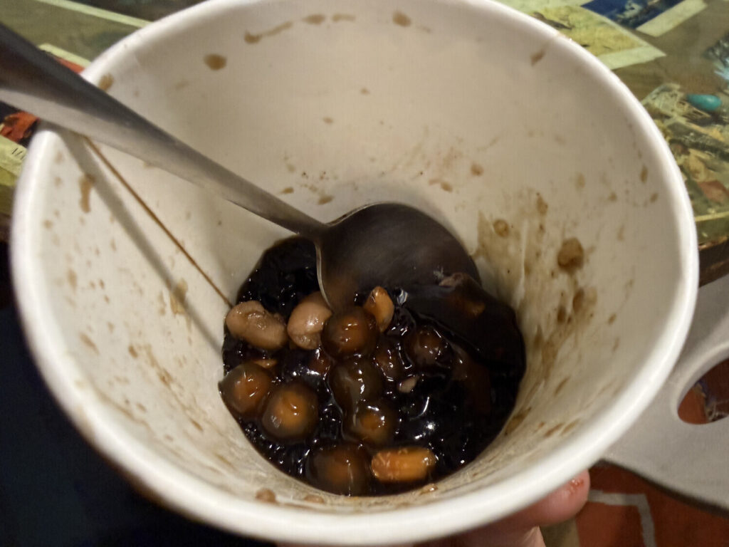 A las 18:30 Wing me dio de probar un postre taiwanés con textura Q.
