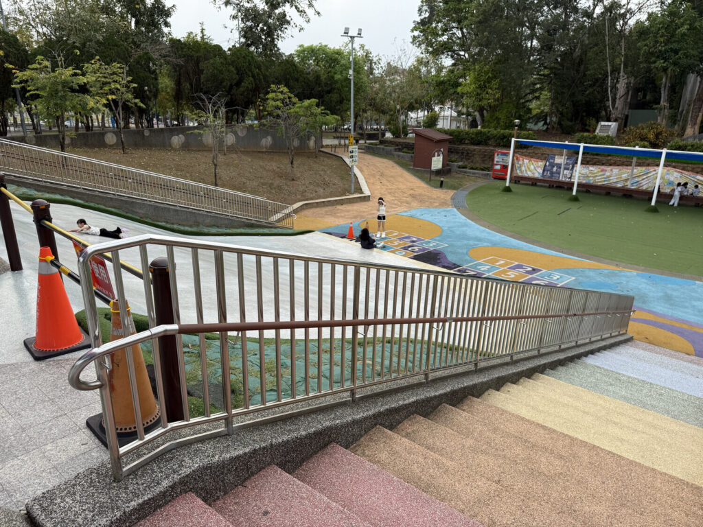 Una cosa que aprendí de Taiwán es que es común que los parques como estos tengan debajo de ellos un aparcamiento de pago. Ese edificio que ves en la primera imagen del parque, no es solo la entrada a los aseos públicos sino también el acceso a las escaleras que conducen al aparcamiento subterráneo.