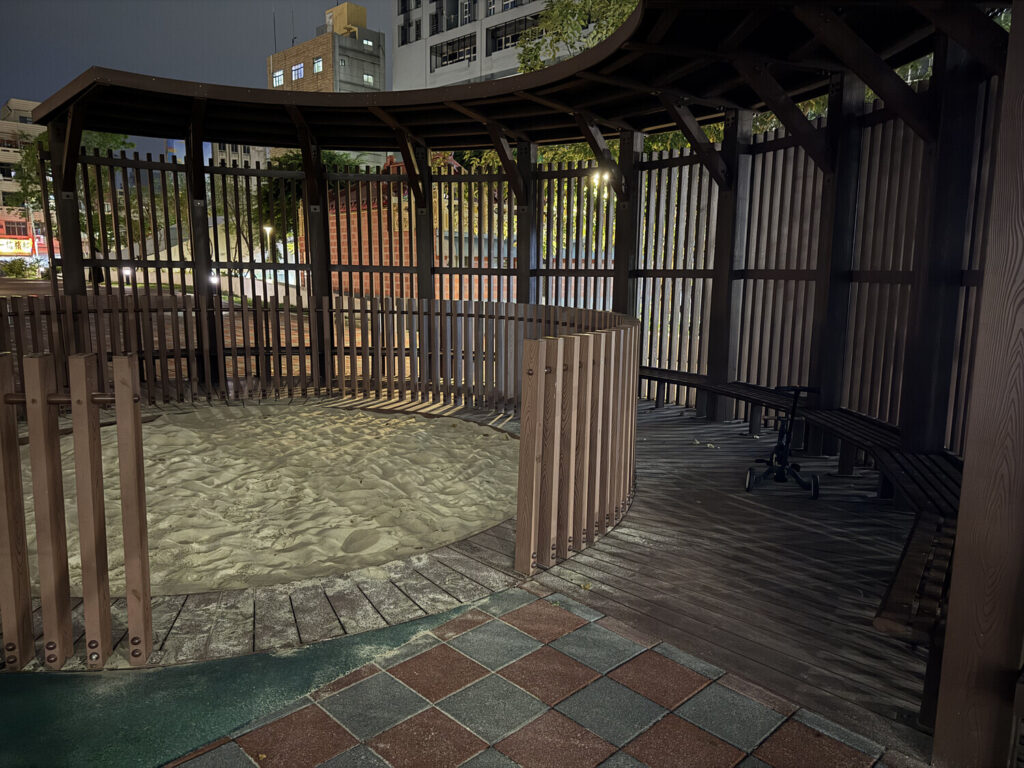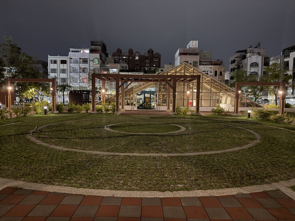 A las 22:30 salí a un Carrefour Market que quedaba a 700 metros de mi hotel, y estaba las 24 horas abierto. Una cuadra antes de llegar a él pasé por un parque que parecía ser bastante moderno: 義昌公園 (Parque Yichang).