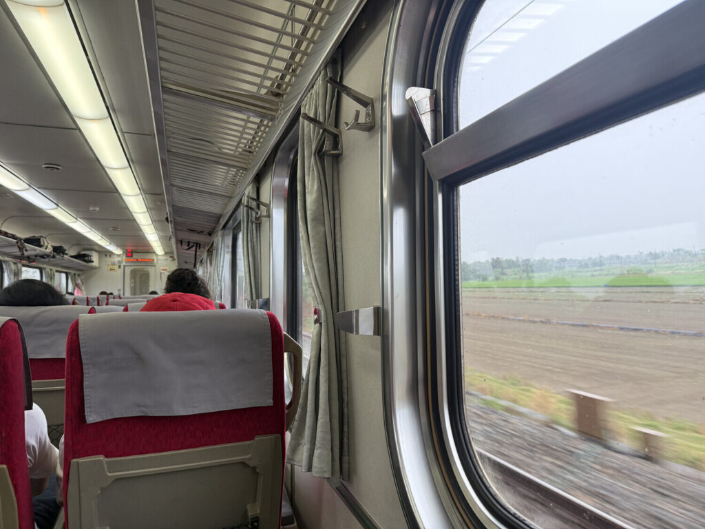 Como normalmente no tengo apuro en llegar —al contrario, me gusta que el trayecto sea largo para aprovecharlo para escribirte, estudiar chino, leer libros, etc.— y prefiero gastar lo menos posible, suelo elegir el tren local. Pero esta vez me tenía había quedado que me encontraría con alguien a las 11:30, así que para poder llegar a tiempo me tomé un tren exprés, en particular un Puyuma Express.