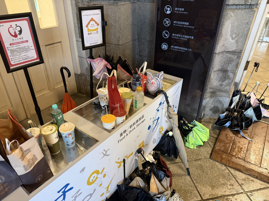 No es la primera vez que veo este espacio para dejar la bebida antes de entrar a un lugar público en Taiwán, mientras que en otros países no suele existir. Con lo seguido que los taiwaneses consumen bebidas tipo té helado de tapioca, pienso que tiene bastante sentido.