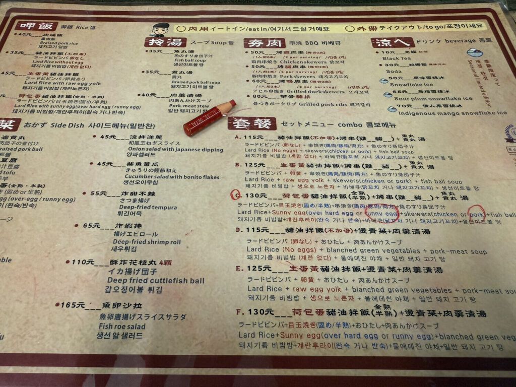 Por NT$130 (~3,5€) me pedí un menú que incluía lo siguiente: